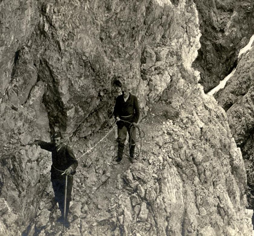 Paul Grohmann was in de 19de eeuw de grote pionier in de Dolomieten. Niet alleen maakte hij een gedetailleerde kaart van de Dolomieten. Hij was ook de Erstbesteiger van de hoogste toppen van de Dolomieten waaronder de Langkofel, de Marmolada en natuurlijk de Große Zinne. Met name met de beklimming van de Große Zinne heeft Paul Grohmann naam gemaakt. Op 21 augustus 1869 beklom hij de middelste van de Drei Zinnen samen met de berggidsen Franz Innerkofler en Peter Salcher. Waarbij het verhaal gaat dat Franz Innerkofler en Peter Salcher de dagen voorafgaande aan de eigenlijke beklimming al een keer boven waren om de beklimming te verkennen. Direct bij de eerste poging, vanuit Landro, op 21 augustus haalde het drietal al de top. In een kleine drie uur stonden de drie bergbeklimmers op de top, een tijd die overigens nog altijd als ā€˜normaal’ geldt voor deze route.